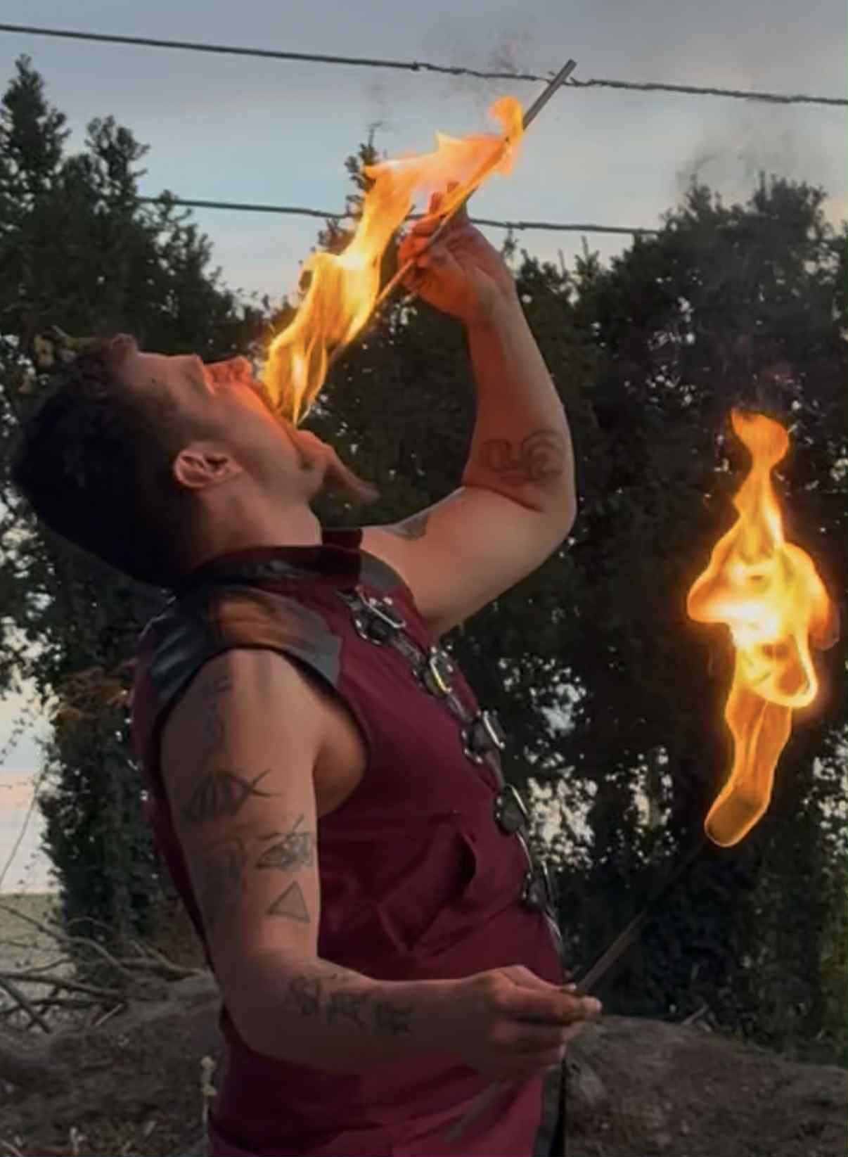 I CAN ADD A TOUCH OF EXCITEMENT AND UNPREDICTABILITY TO YOUR EVENT WITH MY FIRE-BREATHING SKILLS, COMBINED WITH SATIRE AND SOCIAL COMMENTARY. MY PERFORMANCES ARE TAILORED TO FIT YOUR SPECIFIC NEEDS AND GOALS, WHETHER IT'S A CORPORATE EVENT, FESTIVAL, OR PRIVATE PARTY.